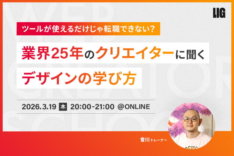 著者紹介:株式会社LIG 教育事業部 リクルーティングアドバイザー 大澤 昇平採用コンサルタントとして数々の企業のWebデザイナー採用のお手伝いをしてきた。自社運営のWebデザインスクールのキャリアコンサルタントも兼任しており、Webデザイナーと企業の双方に寄り添える支援が強み。 |