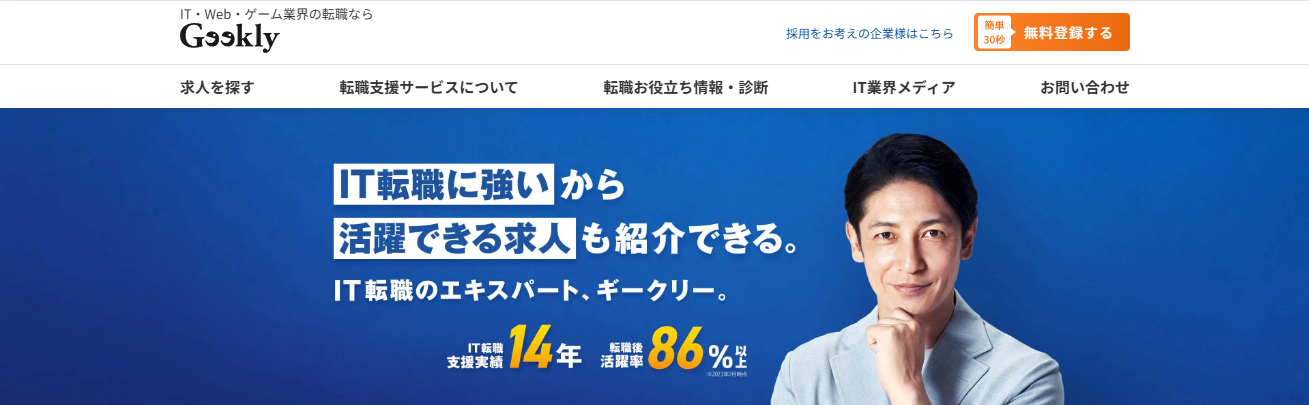 | Geekly | 業界特化 | IT・Web・ゲーム業界専門。年収アップ率79%以上、スピーディーな転職支援 | 年収アップを狙う経験者 |