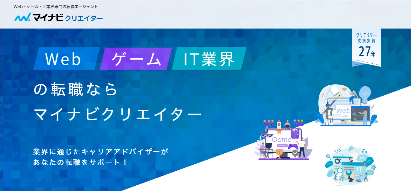 大手マイナビグループが運営するWeb・ゲーム・IT業界のクリエイター職に特化した転職エージェントです。