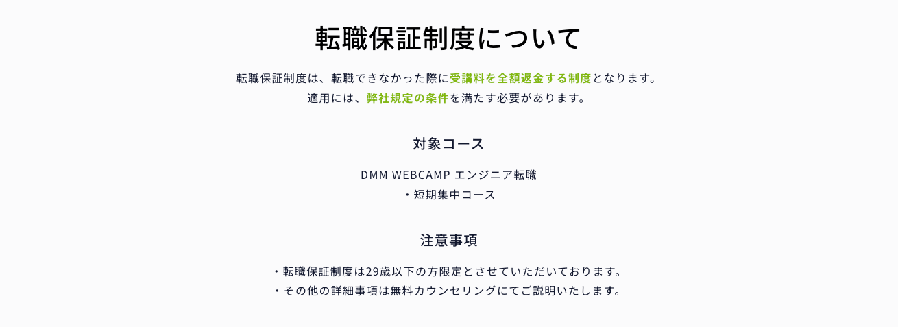 ※転職保証制度はエンジニアコースのみ対象で、Webデザイン含めた他のコースは対象外です。