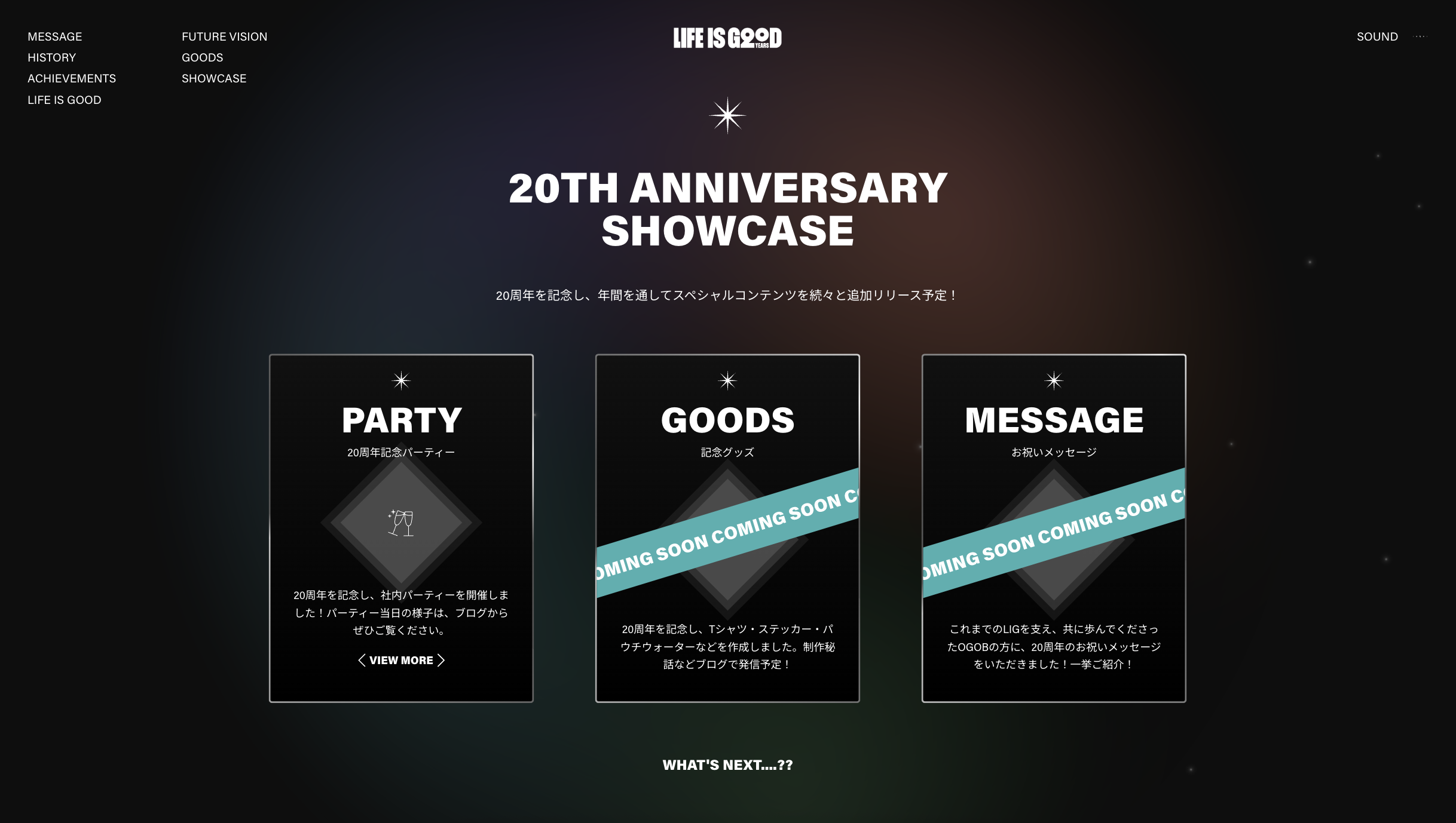 LIGが歩んできた20年の歴史と、これからの未来への想いをぎゅっと詰め込んだ記念サイトを制作しました。