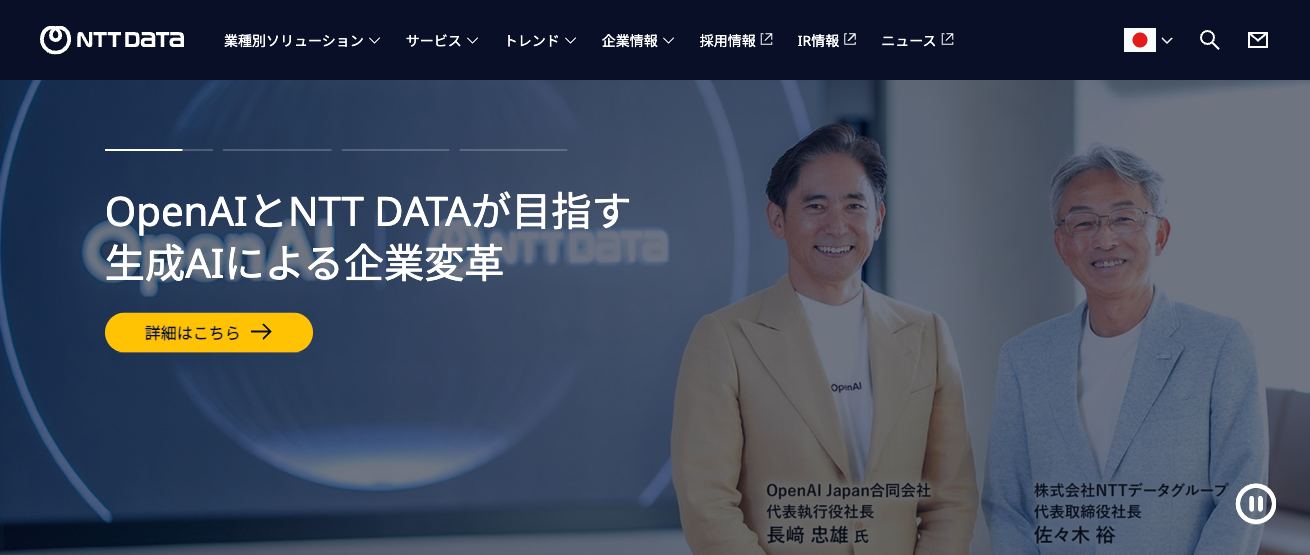 株式会社NTTデータは、日本を代表する大手総合SIerです。官公庁や金融といった大規模でミッションクリティカルなシステム開発に強みを持ち、ITインフラの構築・運用からビジネスアプリケーションまで、グローバルに幅広いサービスを展開しています。