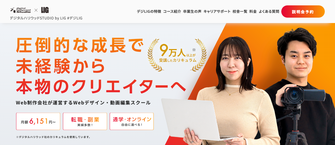 - 株式会社LIGとデジタルハリウッドが業務提携をしてはじめたクリエイター養成スクール。Webデザイナーや動画クリエイターを目指す方向けのカリキュラムを展開している。現在、上野・池袋・大宮・北千住・川崎・町田・柏にSTUDIOを構えている。