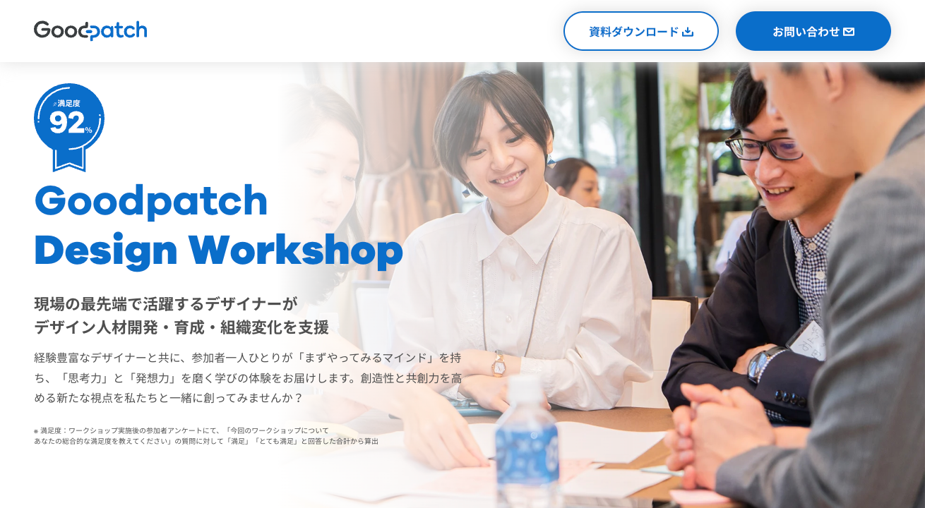 数多くの企業のDX支援やプロダクト開発を手掛けるデザインカンパニー、グッドパッチが提供する法人向けデザインワークショップです。現場の第一線で活躍するデザイナーが講師となり、デザイン思考を組織にインストールすることを目指します。