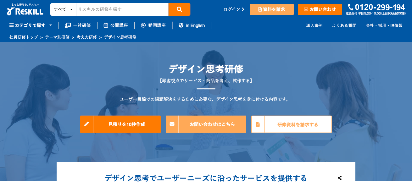 | 主な講座 / カリキュラム | デザイン思考基礎研修:・デザイン思考の5つのプロセス ・カスタマージャーニー作成ワーク ・ブレインストーミングによるアイデア発想 ・試作品の作成とユーザーテスト |