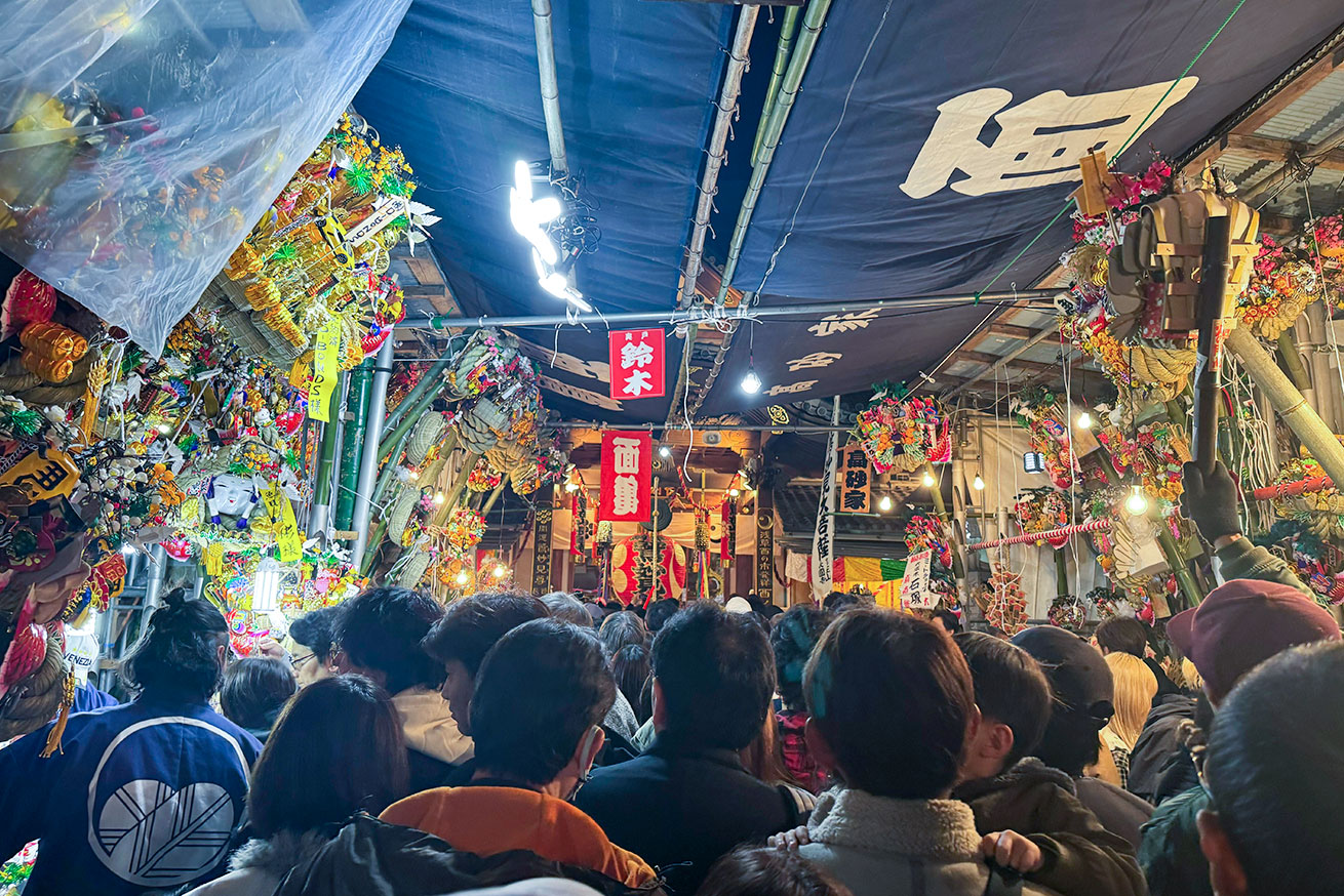 - 11月の酉の日に開かれる、商売繁盛と開運を祈願する伝統行事。浅草の「鷲神社(おおとりじんじゃ)」と「長國寺(ちょうこくじ)」で開催され、華やかな「熊手(かっこめ)」を買って福を“かき込む”のが定番です。