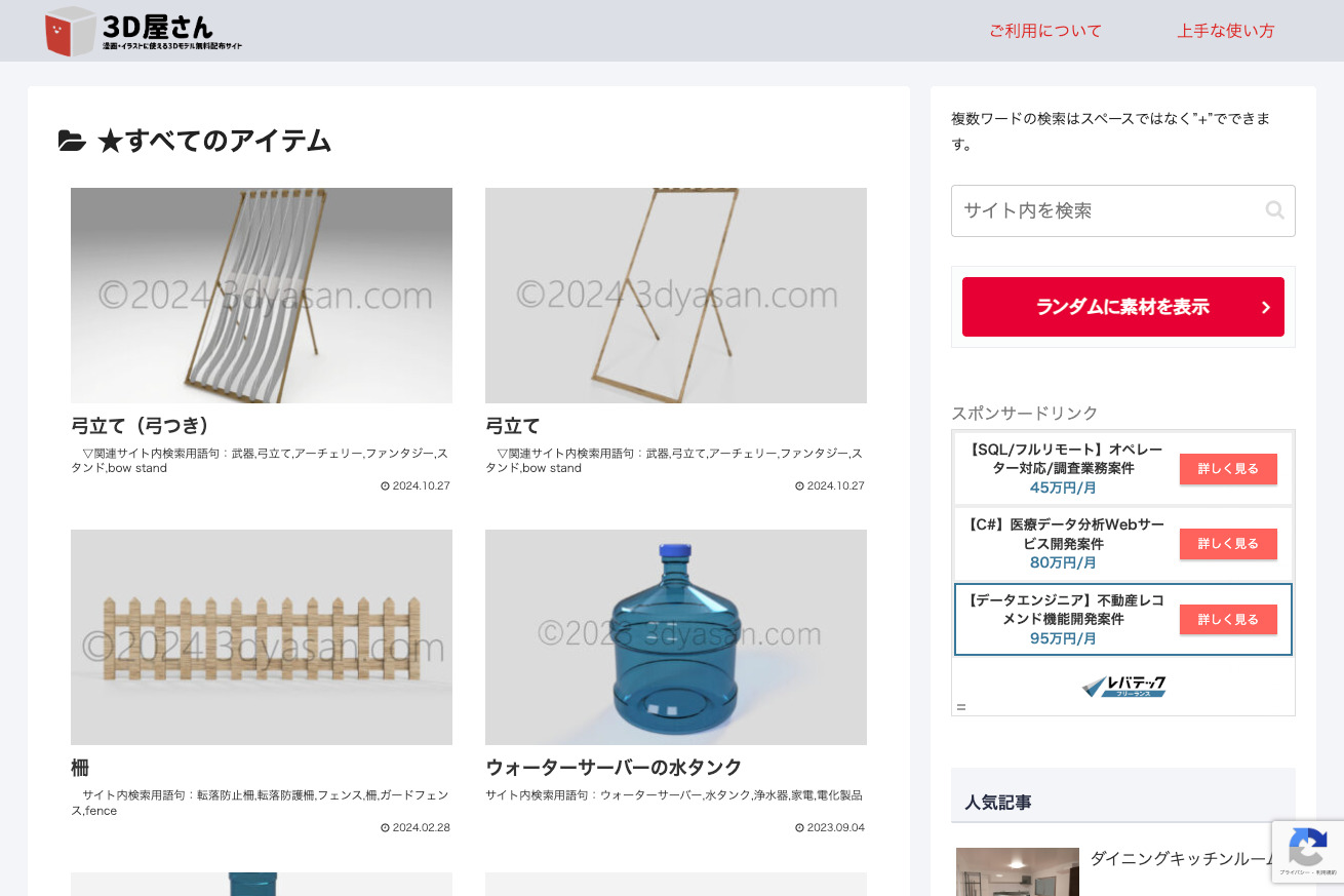 3D素材がフリーでダウンロードできる日本サイト。2026年10月31日をもってサイト閉鎖となってしまうようです。