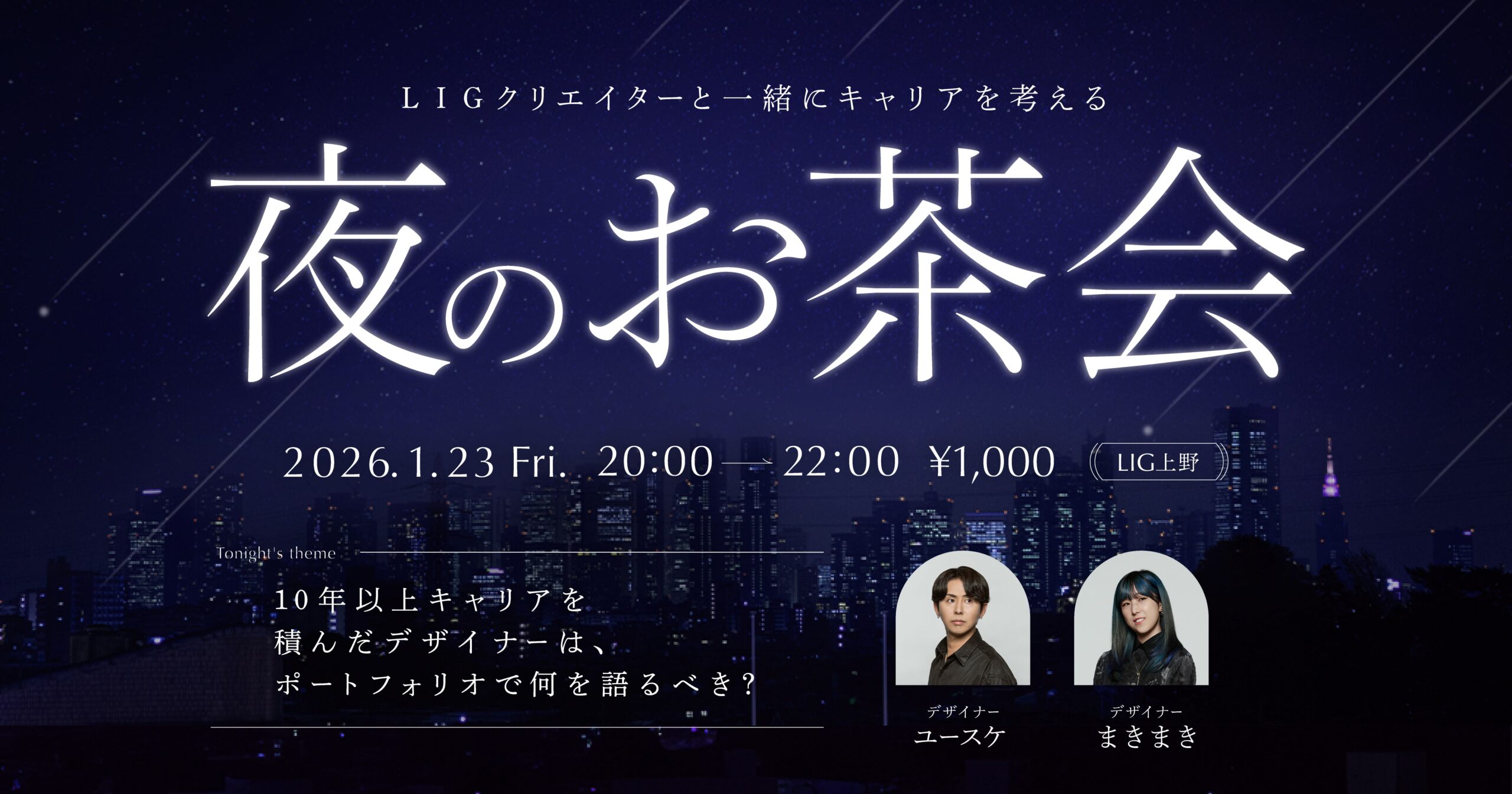 次回は、キャリア10年以上のLIGデザイナーが、同じく10年以上選手のポートフォリオをレビューするという、特別なオフラインお茶会を開催します。