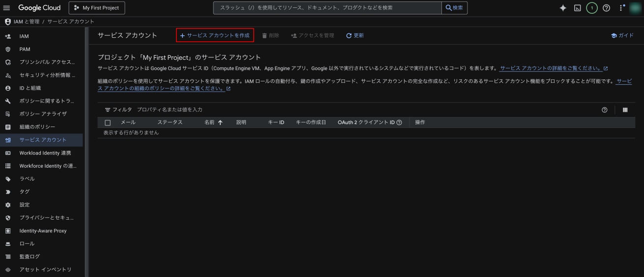 BigQueryを利用するためには、Google Cloudでサービスアカウント作成や鍵(JSONファイル)の作成が必要です。以下、手順を解説していきます。