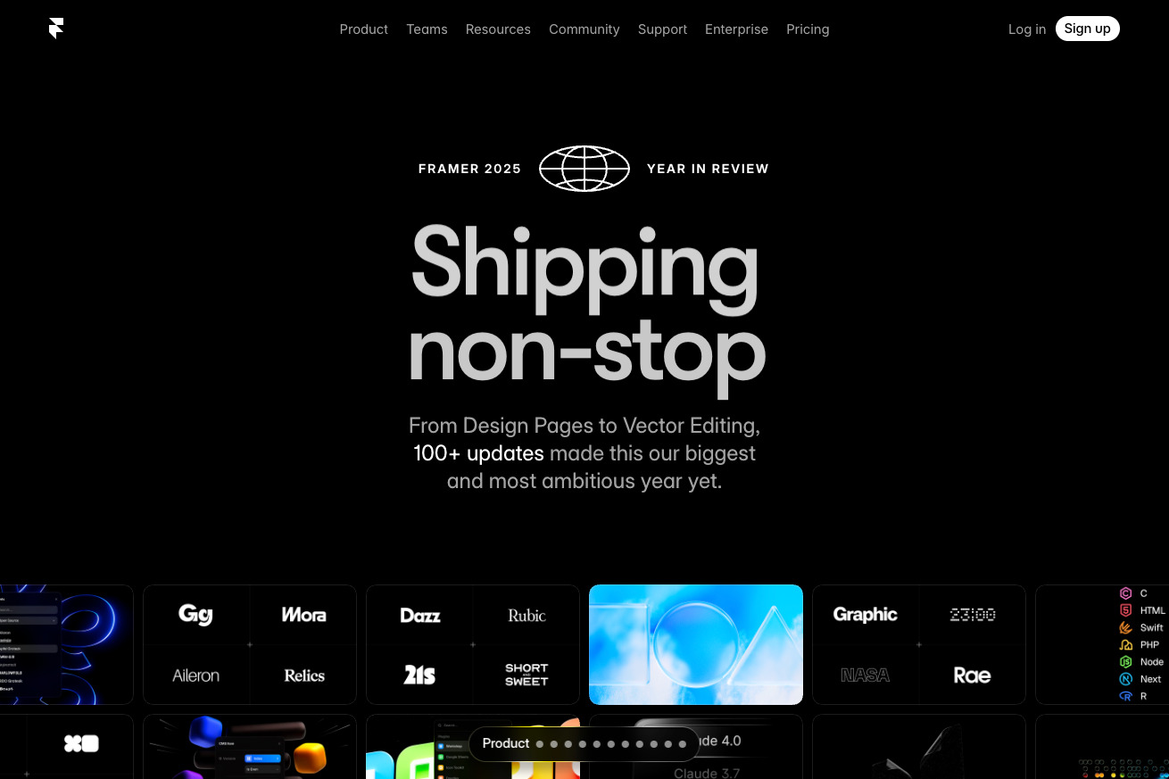 Webデザインノーコードツール「Framer」の2025年の活動をまとめた年次レポートページ。