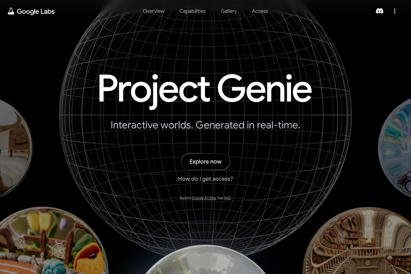 「Google Labs」で公開されているProject Genie。無限に多様な世界を作成・探索できる実験的プロトタイプです。