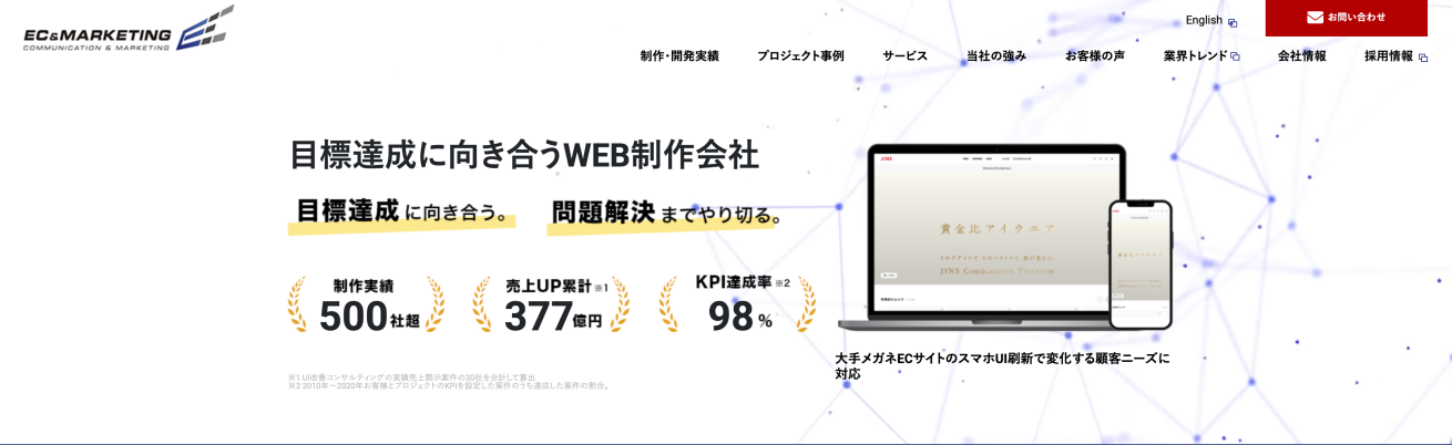 社名の通り、ECマーケティングを中心にWeb制作やアプリ開発をおこなっている企業です。これまで500社を超える支援実績を保有し、とにかくECマーケティングの経験が豊富なのが強みといえます。