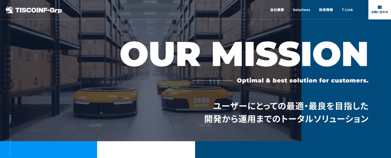 TISCOINF株式会社は、1989年の創業以来、物流関連のシステム開発をメインに展開している専門企業です。自社開発のWMS(倉庫管理システム)パッケージを軸に、クライアントの業種・業態に合わせた柔軟なカスタマイズや受託開発を得意としています。